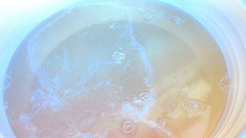 7) Pour soap mixture into the container of water and stir until well mixed.